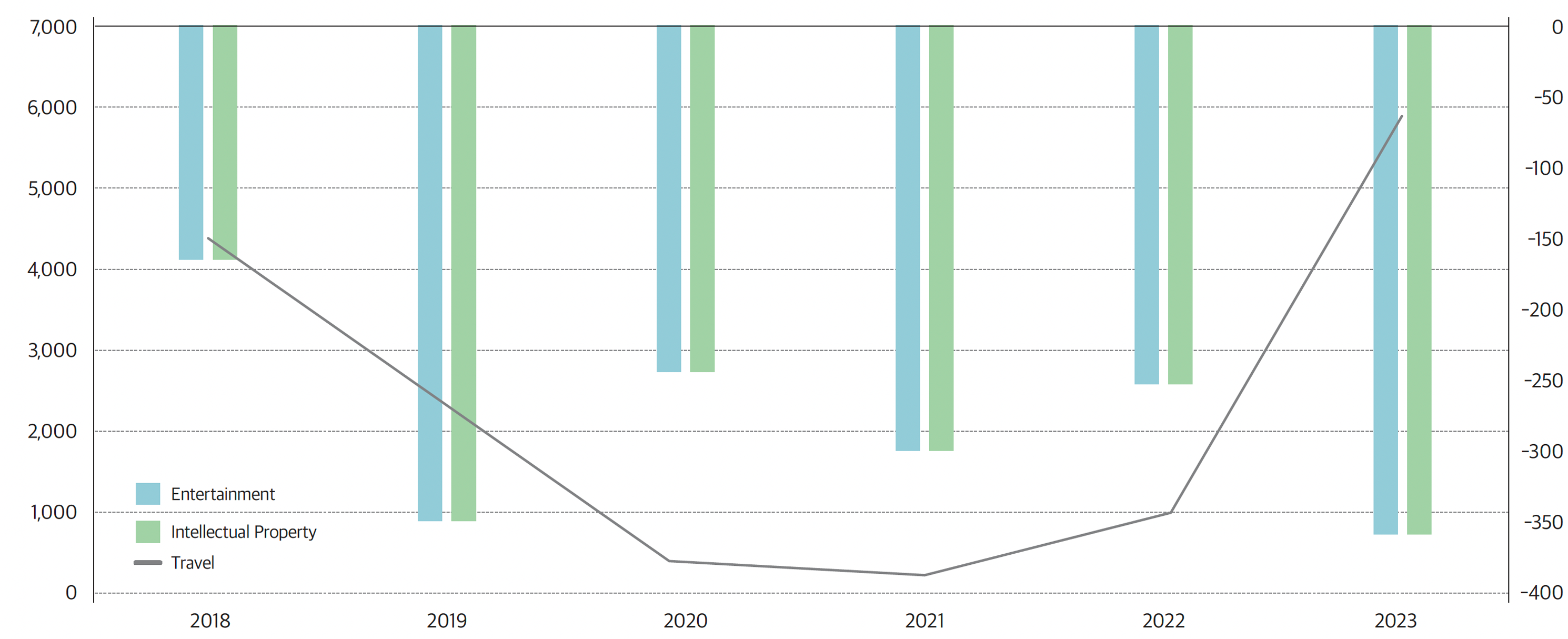 Korea’s development has been predominantly driven by manufacturing exports, which appear to foster a sense of national pride and optimism regarding prospects. However, Korea has achieved notable success in the content industry, such as television dramas and popular music, extending the value chains with fashion, cosmetics, food or restaurants. In the realm of social networking services (SNS), Japan has become the biggest foreign market for Korean company. Korea has lamented historical trade deficit against Japan, but it is noteworthy that Japan has experienced a deficit in entertainment and intellectual property services as is shown in the figure.