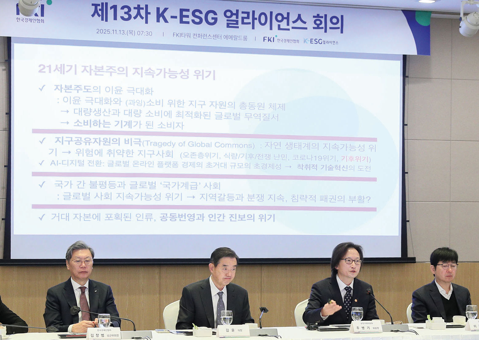 The K-ESG Alliance operates as a voluntary private-sector consultative body involving major Korean companies. Government officials, including the Chairperson of the Fair Trade Commission, are invited to share ESG policy updates and discuss management responses aligned with international standards.