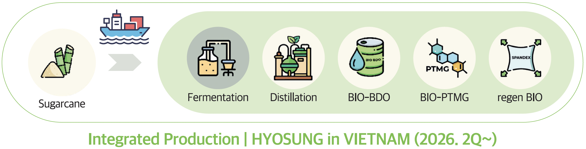 This bio-based process will be fully implemented at the Bio BDO production plant in Vietnam, scheduled for completion in the first quarter of 2026. Raw materials produced there will be converted into intermediate inputs at nearby facilities and then processed into spandex yarn. From raw material to finished fiber, the entire process takes place within a single region, forming the world’s first fully integrated spandex production system of its kind. By reducing transportation distances and streamlining processes, the system enhances efficiency while lowering carbon emissions.